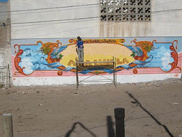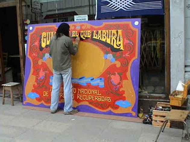 Era primera vez que Freddy “Filete” Fernández visitaba Valparaíso. Su paso ha estado cargado de buenas vibras y conexiones futuras. Freddy es un fileteador de oficio, dibujante de pincel en mano que ha sobrevivido a los avances de la tecnología que desde los años noventa ha anunciado el fin de este arte. El filete tradicional que practica Fernández se niega a morir a pesar del avance del plotter y busca nichos en los cuales esta fría técnica tiene las puertas cerradas. Freddy filetea y hace murales y su paso por Valparaíso va dejar su huella. Fileteó la ex Capilla Santa Ana del Cerro Cordillera, lugar recuperado para el trabajo comunitario. Asimismo, trabajará en el frontis del tradicional bar El Canario de calle Cumming y a la vuelta del bohemio local le han pedido haga una obra en homenaje al loco Bielsa.