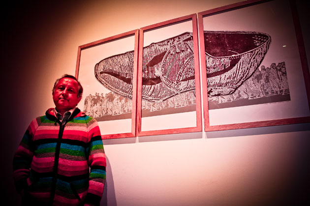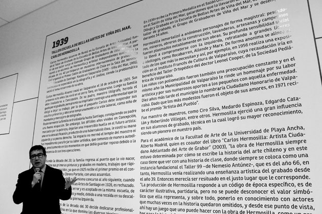 Es la tercera exposición de artes visuales del PCdV. Luego de Objetual y Pintura Latente, el grabado se manifiesta en todo su esplendor y embellece una pared blanca de más de 50 metros. Grabado Manifiesto reune más de 100 obras de casi setenta exponentes locales. No están todos los que son, ni están todos los que son, diría Justo Pastor Mellado en la inauguración del pasado jueves 14 de junio. La obra de Víctor Maturana, curador de la muestra junto a Arnoldo Carvajal, y su obra “Un pie y tres cuotas”, ganadora del Salón Sur en Concepción en el año 1989 es el pie de partida, la apuesta montada por Mellado, para instalar a Maturana como referente luego de una involuntaria omisión y tras 50 años del otro gran hito en el grabado local, la creación de la escuela de grabado en Viña del Mar, en 1939, a cargo de Carlos Hermosilla.