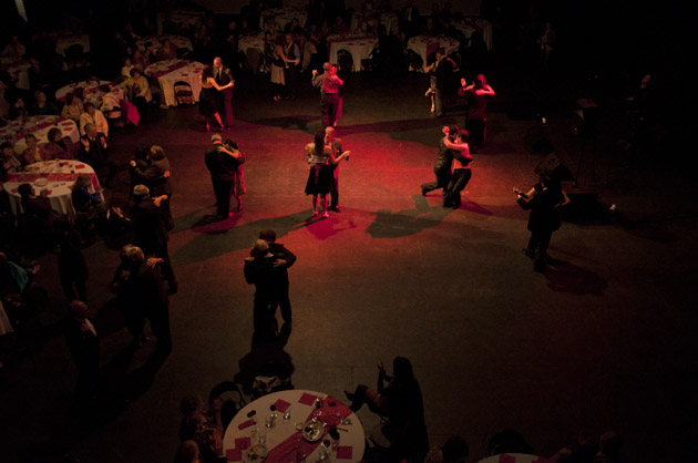 Acomodando el gran escenario del teatro con mesitas y una pista central, la apuesta fue recrear una tanguería y pasar una noche inolvidable. Todas y todos se fueron encantados al final de la jornada que comenzó con una sólida Ana Flores, continuó con una muestra de tango a cargo de varios jóvenes entre ellos Tamara y Milenko, nobeles exponentes de este bello baile.