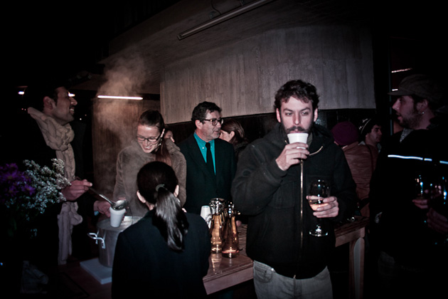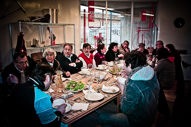 A la hora en que terminaba de actuar la Compañía Cachiporra en la sala de teatro, en el container emplazado a la entrada del PCdV, se preparaba la presentación de la primera obra del ciclo preparado por Teatro Container y que tendrá una extensión de varios meses, proporcionando teatro de calidad, en un formato específico, que permite una relación íntima, directa, con el montaje teatral, destinado a fortalecer la mirada sobre la creatividad interpretativa y la dramaturgia. En efecto, más tarde, cercana a las veinte horas, tuvieron lugar dos representaciones consecutivas de una obra de la dramaturga argentina Griselda Gambaro. Una vez finalizada las funciones, el público fue invitado a tomar una copa de vino y a consumir una sopa caliente, producida por nuestro equipo, como parte de nuestro Laboratorio culinario. Este laboratorio es el que continúa la experiencia iniciada con las Cinco sesiones de cocina porteña. Justamente, estas sesiones precedieron la iniciativa que denominamos Operación caldillo, que consiste en preparar un cocimiento para ser ofrecido al público que asiste a funciones teatrales en invierno. Ha sido el caso a propósito del comienzo de la estadía, una verdadera residencia, que hace Teatro Container en el PCdV. El Laboratorio, a su vez, permitió que la reunión de expresos políticos se realizara a medio día, bajo un formato de almuerzo de camaradería.