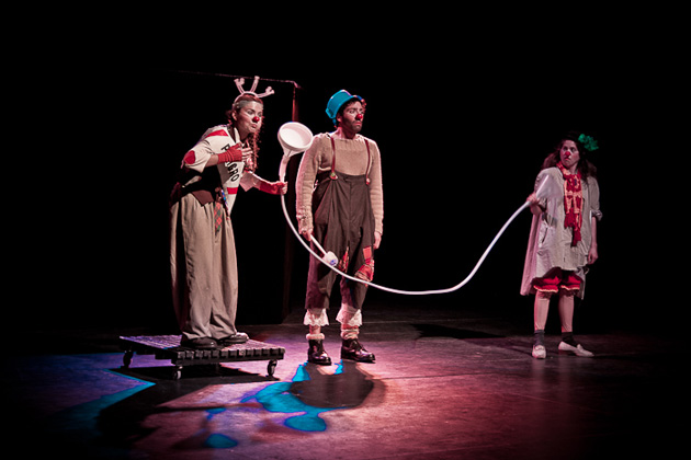 El mismo día sábado, a media tarde, en la sala de teatro, se llevó a cabo la presentación de la compañía de clown Cachiporra, que montaron un espectáculo especialmente concebido para niños, en un proyecto auspiciado por la Fundación Cultural de la Cámara Chilena de la Construcción. Esta compañía realiza habitualmente su preparación y entrenamiento en las dependencias del edificio de Transmisión. Dato importante a relevar, porque es una muestra del uso que los artistas hacen de este espacio. Es preciso recordar que este es uno de los estratos de público con que trabajamos; el público formado por los artistas locales, profesionales y semi-profesionales. Esta es una situación que hay que relevar porque satisface una exigencia, que consiste en fortalecer la escena de arte local, en el nivel de sus prácticas específicas. En esta perspectiva, el próximo miércoles se inicia el seminario preparatorio para la realización de la residencia de danza contemporánea en colaboración con la Fundación Siemens y el CNCA.
