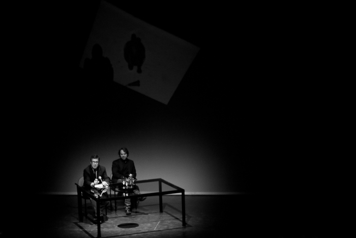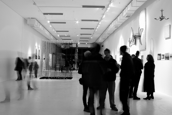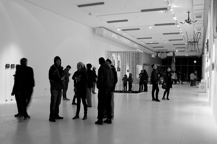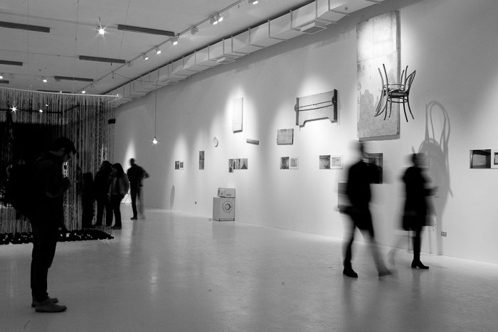 El público tímidamente fue llegando, algunos estaban viendo el show peruano en el teatro, espectáculo que debió haber terminado antes de la inauguración, pero que sin embargo, llegaba al ocaso casi junto al comienzo de Alzheimer. Las copas de espumante esperaban a los comensales, los que movidos por el fuerte viento comenzaron a aparecer en el tercer piso, en la sala de artes visuales, que tras desmontar los abundantes grabados, ahora alojan una particular muestra hasta el 23 de septiembre.