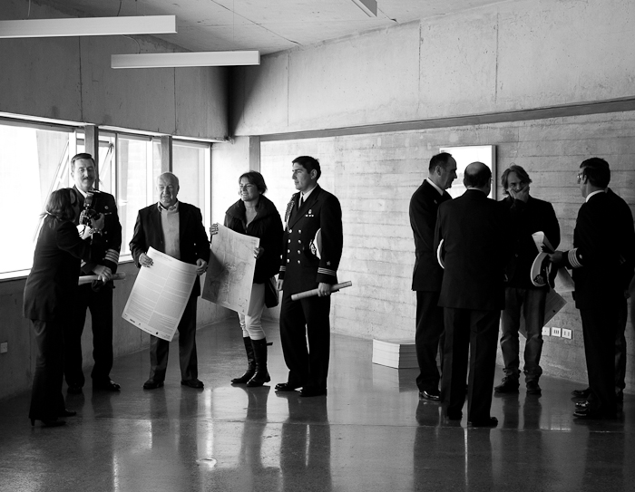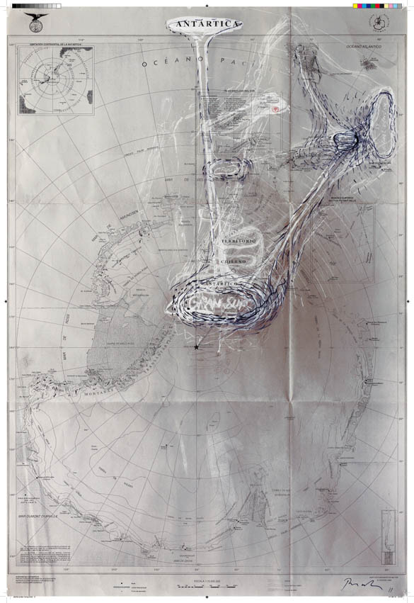 Mientras durante la mañana del martes 28 de agosto se realizaban las tres proyecciones del video Gran Sur de Fernando Prats -en la sala de teatro del PCdV-, el artista pronunciaba una conferencia en la Escuela Municipal de Bellas Artes de Valparaíso sobre algunos momentos claves de su trabajo, en particular los tres últimos proyectos que ha comenzado a desarrollar después de su participación en la 54ª Bienal de Venecia el año pasado. El día lunes 27 ya había tenido lugar la proyección inaugural de este video y la conferencia de Justo Pastor Mellado sobre este envío a Venecia, en el que le cupo una relevante participación como asesor en el gabinete del Ministro de Cultura. Esta conferencia coincidía, además, con el encendido oficial de la pieza de neón que Fernando Prats instaló en Isla Elefantes, operación en que la Armada tuvo una participación fundamental a través del rompehielos Viel. Esta pieza fue montada en la terraza del PCdV y es visible de noche desde varios puntos de la ciudad. En el espacio contiguo al ingreso al edificio de Difusión se ha colgado la lámina original que contiene el mapa conceptual de Gran Sur, junto a una ruma de mapas impresos que en su reverso acogen el texto del curador del envío de Prats a Venecia, el crítico de arte madrileño Fernando Castro Flórez.