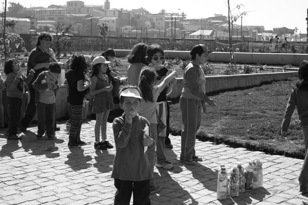 El Colegio Alimapu ubicado en la avenida Alemania es también un establecimiento educacional vecino del Parque y desde hace meses que querían venir a utilizar las amplias dependencias que ofrece hoy el espacio PCdV. De hecho, en julio en el marco de año nuevo mapuche (we tripantu) habían organizado realizar el juego del palín (chueca) en el pasto del Parque, pero debido a las amenazantes condiciones climáticas de esos días decidieron suspender su actividad. Esta vez sí pudieron venir y disfrutaron de una mañana entretenida efectuando juegos típicos, compartieron una colación y luego de correr y reír, dejaron todo muy limpio, tal cual lo encontraron.