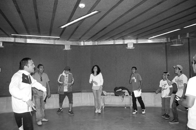 Roberto destaca la participación de los jóvenes durante el mes que ha durado el taller, pues se ha producido un grado de responsabilidad y compromiso hacia la actividad que no había experimentado en otros talleres que ha realizado, y agrega que estar en la sala de ensayo, es una motivación por la calidad del sonido y espacio que tienen para la grabación.