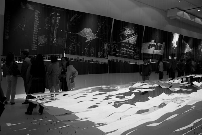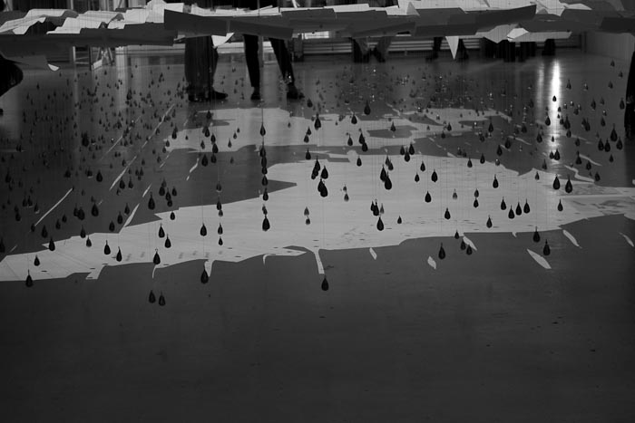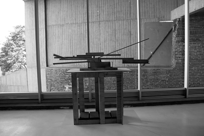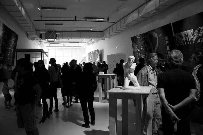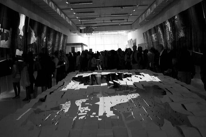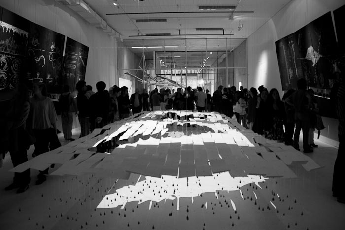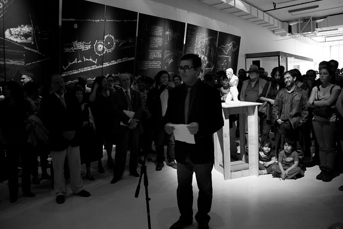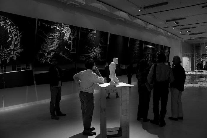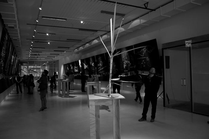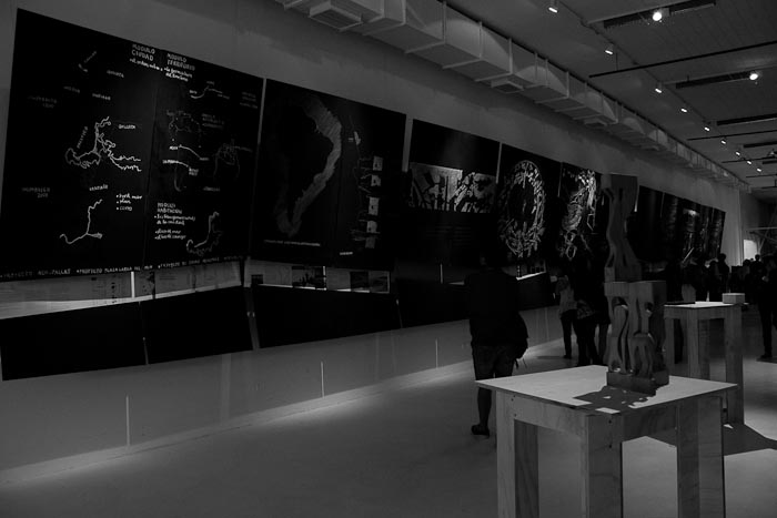 Una compleja exposición en la sala de artes visuales montada por alumnos y profesores de la Escuela de Arquitectura de la Pontificia Universidad Católica de Valparaíso.