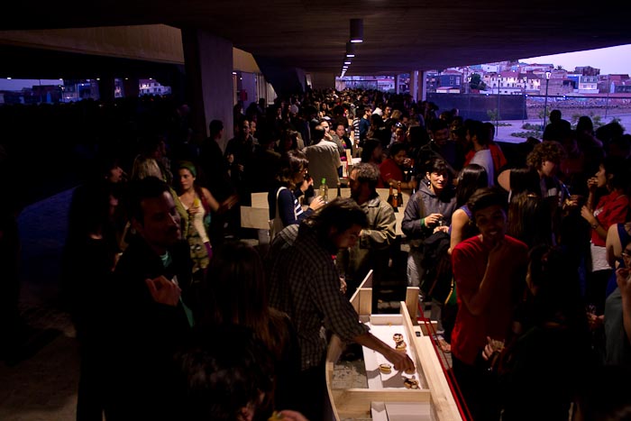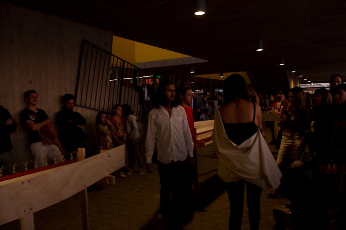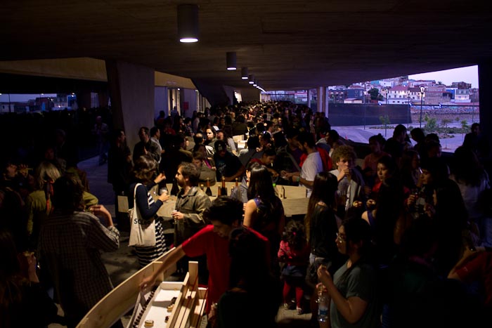 Fue una noche deslumbrante, en donde los designios filosófico-artísticos de todos aquellos quienes componen Amereida se cumplieron a cabalidad. Si bien la ceremonia inaugural se realizó en la misma sala, la bienvenida a la gran cantidad de invitados se desarrolló en la terraza del segundo piso en donde el bebestible y comestible fue dispuesto en, claro está, estructuras diseñadas y construidas para la ocasión, con ese toque contemporáneo y funcional que los caracteriza.