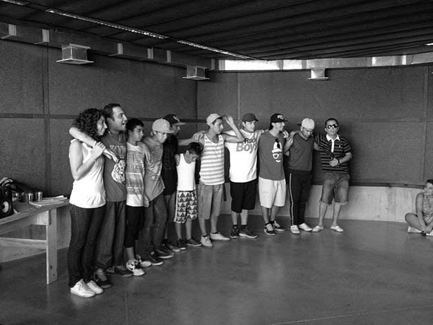 Comenzó con la presentación de 3 grupos distintos, conformados por integrantes del taller, en donde mostraron un poco de sus canciones y habilidades en la conjugación de rimas.