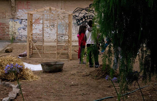 En forma paralela a la construcción del Invernadero se está desarrollando la escuela de verano para niños Disoñando Valparaíso, que cuanta con la participación de una veintena de niñas y niños del sector , quienes han trabajado en torno diferentes talleres, entre estos un taller Bioconstrucción que los ha llevado a levantar un construcción sustentable a escala que será expuesta a un costado el invernadero.