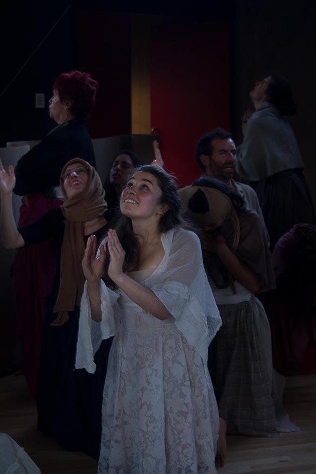 16 son los artistas que dan vida a la representación vinculada con el texto de García Márquez: “Un señor muy viejo con alas enormes” y por lo cual se invita a Agustín Letelier para dirigir, pues en el año 1983 fue parte del elenco que realizó una adaptación de “La increíble y triste historia de la candida Eréndira y su abuela desalmada” del Teatro Urbano Contemporáneo “TEUCO”, que marca un hito en el teatro callejero experimental.
