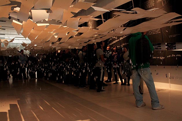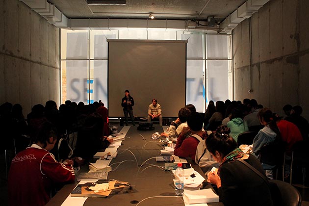 Cerca de 130 alumnos de Arquitectura y Diseño tuvieron la posibilidad de presenciar el último día de la exposición que estuvo alojada en la Sala de Artes visuales desde el pasado 21 de diciembre, en donde los docentes que los acompañaban, explicaban vagamente cada pizarrón de la exposición.