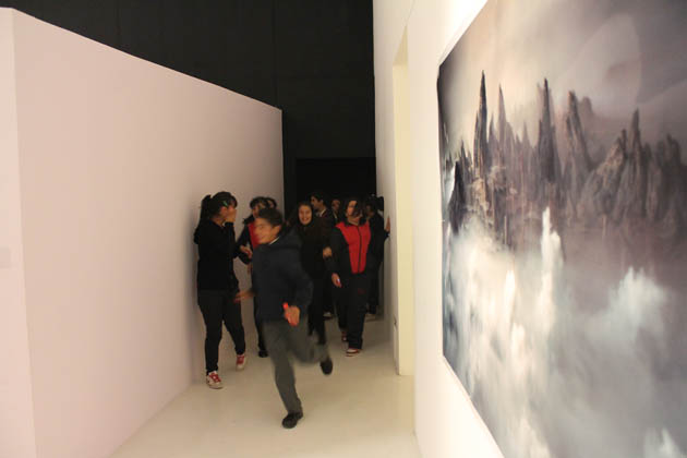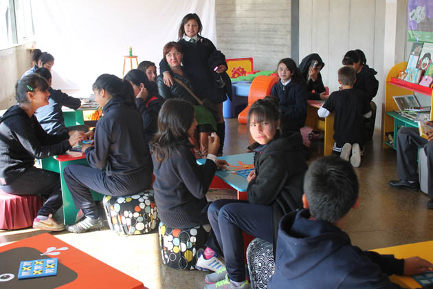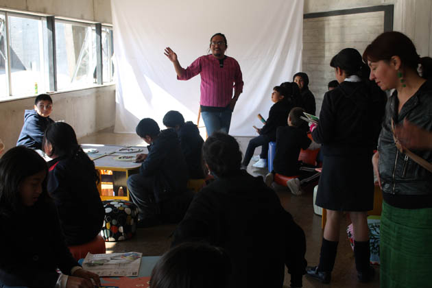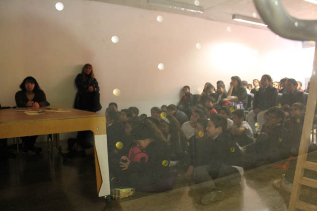 Luego de un exitoso fin de semana en donde el sol recibió a los visitantes con las manos abiertas, hoy llegaron a la Ludoferia varios buses cargados de escolares de distintas partes de Valparaíso. Ellos, con ansiedad y alegría recorrieron las distintas partes de la gran muestra: mientras unos escuchaban cuentos en la sala de lectura del primer piso, otros los hacían en la sala de danza del segundo. Los más osados, mientras esperaban su turno para ir a la sala de proyección del cuarto piso a ver una selección de cine infantil, se animaban y entraban a la sala de exposiciones del tercer nivel, cautivados por los recovecos y penumbras que se encuentran en la exposición de arte contemporáneo, “Of Bridges & Borders”.
