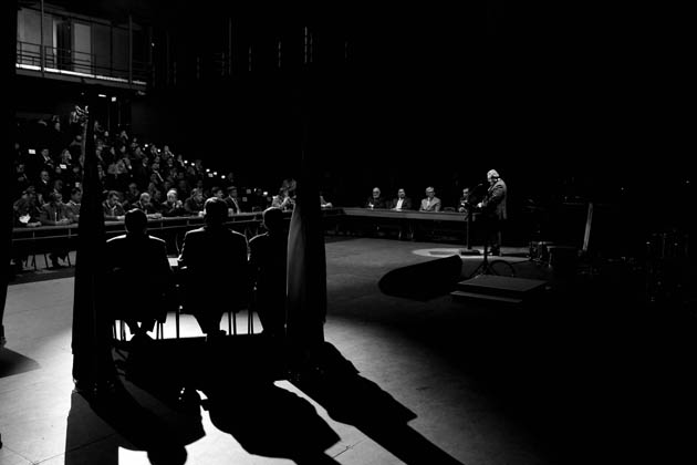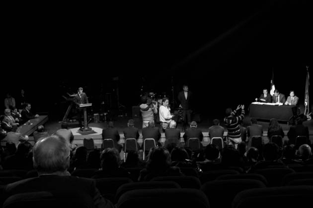 En el teatro del Parque los CORES emularon una sesión normal a modo de hemiciclo, como las que efectúan en el edificio de calle Melgarejo, en donde tomó la palabra el encargado de la Comisión de Gobierno Interior, Juan Antonio Vejar y el Intendente Regional, Raúl Celis.