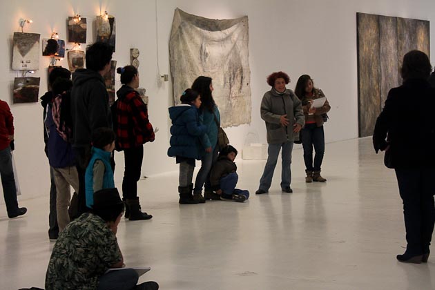 La Exposición que está montada en la Sala de Artes Visuales desde hace ya algunas semanas trae consigo varias actividades en paralelo, seminarios, conferencias, laboratorios, en donde se cruzan 3 generaciones distintas en torno a las artes visuales, una de ellas son los Artistas e Expositores de Pintura Latente II que llevan más de una década trabajando profesionalmente en la escena local, por otra parte estudiantes de arte en proceso de titulación participantes del Laboratorio La Enseñanza de la Pintura y por último escolares inscritos en el Seminario Práctico de Pintura Escolar.