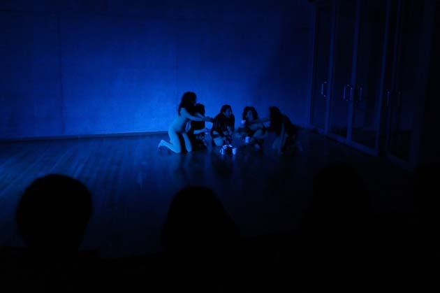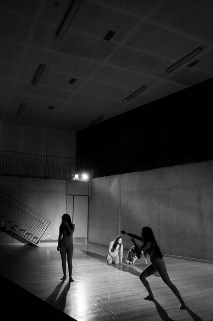 Una presentación dinámica y fluida es lo que se podía ver en escena, una mezcla de diálogos, movimientos, cantos, gritos, se fundían a través de las integrantes de la compañía, que a su vez recorrían todo el espacio de la sala de danza, otorgándole así una atmósfera adecuada para la actuación.