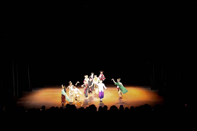 Todo partió con el discurso del Ministro Consejero, el que los presentes escucharon respetuosamente. Siguió con una muestra de parsimoniosos movimientos, muy calculados en donde las manos y dedos muy estirados jugaban un rol fundamental, marcaban las secuencias y ritmos, que lentamente hacían avanzar la coreografía hacia otros giros y movimientos muy estructurados, pero ejecutados delicadamente.