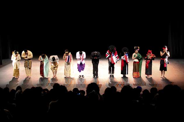 No obstante, la noche todavía no terminaba. El grupo en su penúltima salida al escenario hace una especie de retrospectiva de la danza de su país y al finalizar invitan al público a bailar, el que sin mayor resistencia accedió al frente imitando los gestos y movimientos de los amigos de Tailandia. Este episodio fue en realidad memorable.