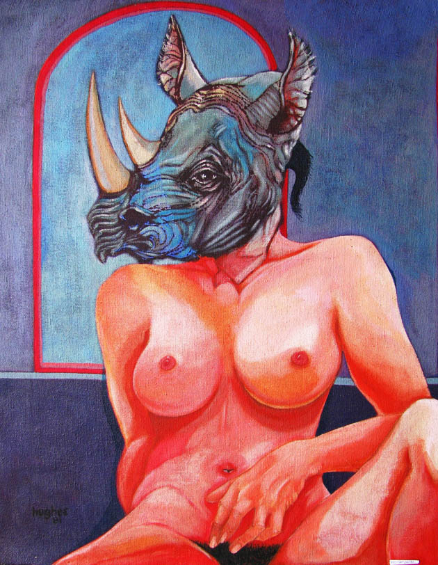 Sergio Rojas en un ensayo que confeccionó para esta muestra señala que “la presencia del cuerpo en la pintura de Hughes es una constante. No se trata sólo de un interés del artista por la figura humana, sino más bien de una obsesión por la representación pictórica del cuerpo. Nos encontramos ante una pintura que asume el hecho de que lo real sólo se puede poner en obra enmascarándolo” enfatiza.