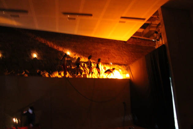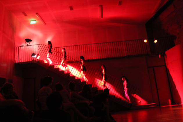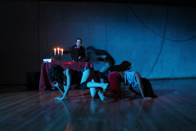 La fuerza de Blas Nordenflycht en con una impecable y rutilante banda sonora experimental compuesta sólo por él en arreglos, voz y efectos transforman esta parte de Exit en una perfomance central, que no sólo es parte del proceso creativo y emocional, sino que también es capaz de ganar protagonismo, bajando de las tinieblas del segundo piso, al centro del set de la sala de danza del edificio de difusión, acomodada especialmente para recibir a público y utilizada impecablemente en cada rincón, destacando las velas que iluminaban la antigua pared de la cárcel pública que aún se mantiene en ese sector.
