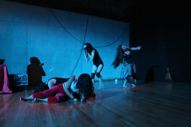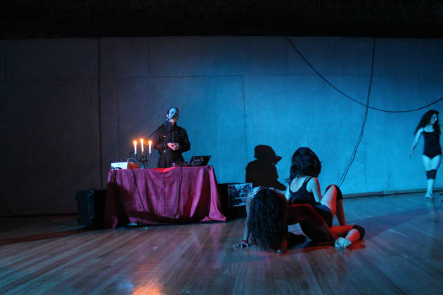 La puesta en escena de “Exit” que une al teatro-danza y el butoh en 4 bailarinas, más una fantástica interpretación en vivo de exper&mentalnoise, esta vez en medio del escenario, dieron una ambientación de artes integradas sin igual, en donde la fuerza del músico y sus composiciones se anidaba en los movimientos bruscos y marcados, lentos y rápidos de las chicas y su ritmo endemoniado.
