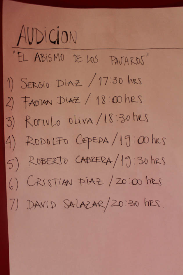 La compañía de teatro Malinche realizó una audición en la búsqueda el personaje Ramiro para el montaje “El abismo de los pájaros” recientemente ganadora de un proyecto Fondart en su área de Beca de Creación en Dramaturgia, Fondo del Libro 2014.