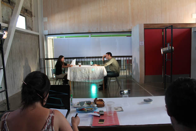 La convocatoria reunió a actores entre 40 y 55 años que debían interpretar una escena en donde Ramiro, hombre de 60 años y carabinero jubilado, dialoga con su hija, la actriz Marisel Muñoz.
