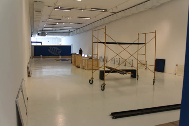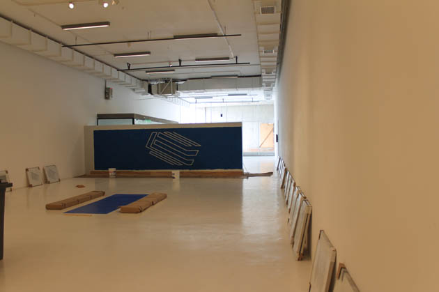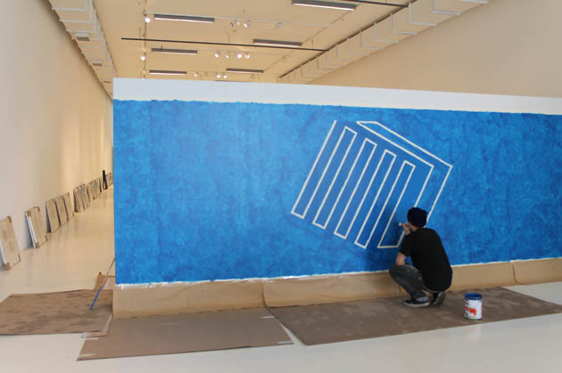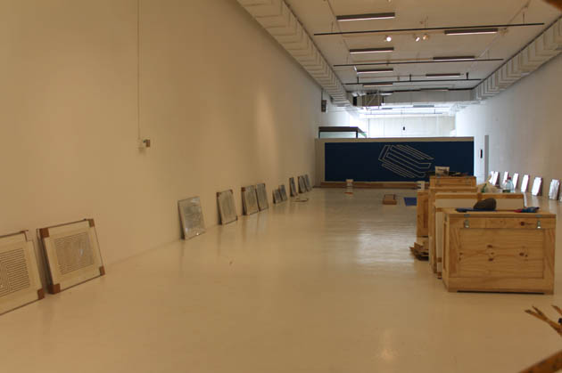 En la sala de exposiciones del tercer piso se ha dado inicio al montaje de la exposición del artista Hugo Rivera Scott. El propio artista, con la ayuda de un equipo especializado de montaje, a comenzado a pintar algunas de sus obras en dos paneles especialmente construidos para albergar una compleja exhibición que lleva por título DIAGRAMAS.