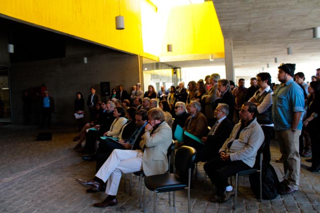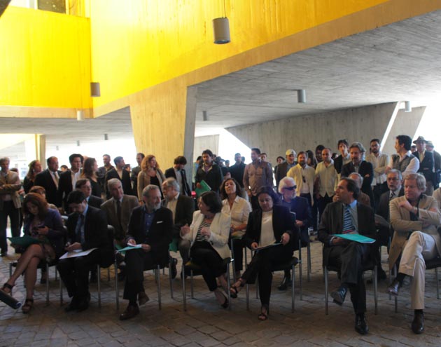 A cuatro meses de su comienzo, se realizó este martes un exitoso lanzamiento en la Ciudad Puerto que contó con la presencia de la Ministra de Cultura Claudia Barattini, la Ministra de Vivienda y Urbanismo, Paulina Saball; el Presidente del Colegio de Arquitectos, Sebastián Gray; el Vicepresidente de la Asociación de Oficinas de Arquitectos (AOA) Pablo Larraín, además de Fernando Marín, quien encabeza el equipo curatorial. Entre el público hubo destacados arquitectos nacionales, entre ellos Teodoro Fernández, Premio Nacional de Arquitectura 2014.