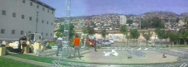 Hace un par de días la Compañía local Teatro La Malinche utilizó la explanada del Parque Cultural para hacer una prueba técnica de los insumos recién adquiridos gracias a un proyecto Fondart.