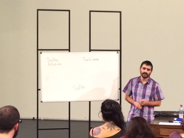 Hoy, en el teatro del Parque se reunieron más de 20 técnicos provenientes de toda la región, todos vinculados a las artes escénicas ya sea en espacios culturales, trabajando con compañías o trabajadores freelance que prestan servicios independientes.