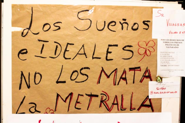 Acá nuestro apoyo y abrazo de solidaridad, para estos ex presos políticos de la dictadura, con quienes hemos trabajado codo a codo en el levantamiento de más de una exposición que hemos montado para relevar la memoria histórica no tan sólo de su pasar y sus vidas privados de libertad por motivaciones políticas, sino que también conmemorar al sitio, al lugar, a la ex cárcel y su antigua galería de reos, como un lugar de memoria que debemos preservar.