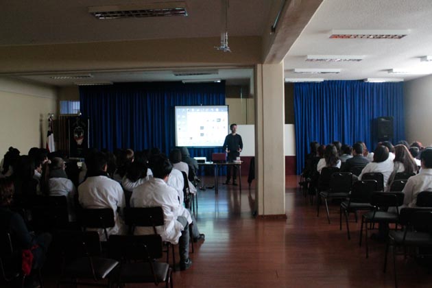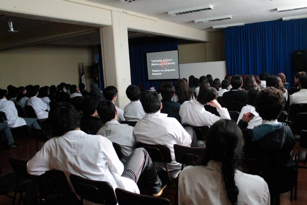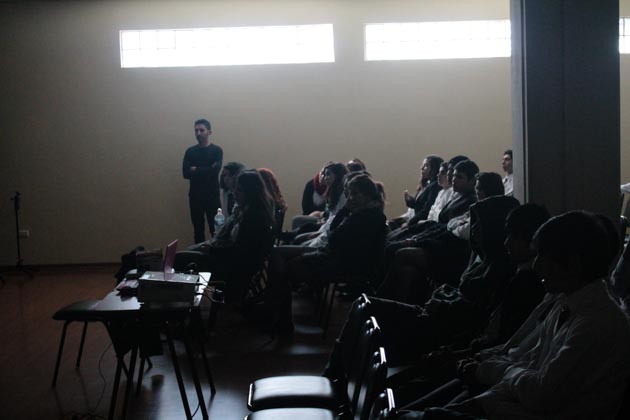 Un entretenido e interesado público escuchó atentamente el director de la Compañía de Teatro Pierrot, Franko Ruiz, quien asistió al salón del Liceo Bicentenario invitado a dar una charla en el marco de la celebración de la Semana de la Educación Artística que el Parque Cultural ha levando para esta semana.