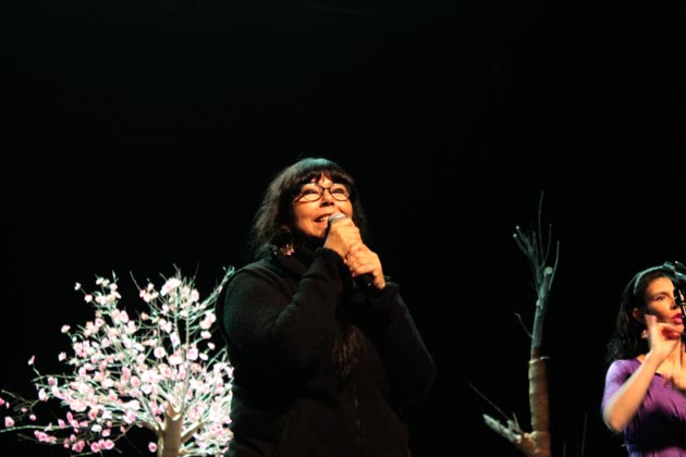 Malucha Pinto: Mucha felicidad porque primero actuar en este teatro es un lujo, es maravilloso porque tiene miles de posibilidades, de hecho varias escenas de la obra las adaptamos a este teatro, pues cómo no aprovechar este espacio maravilloso, es bello realmente, como que a una le dan ganas a venir a montar una obra aquí a este espacio, que es un lujo realmente, o sea hay pocos espacios en Chile , no sólo con esta calidad técnica, sino que es un espacio que ama el teatro, lleno de posibilidades, uno aquí entra y la imaginación explota. Así que muy contenta, hace mucho tiempo que queríamos venir para acá, estamos felices y al principio un poco asustados, si iba a estar lleno o no, pero la gente acudió y rico, un público rico además, muy atento, educado y culto. Qué bonito eso, ir a una ciudad donde hay un público culto, hay un público que sabe ver teatro, muy gratificante para uno.