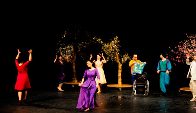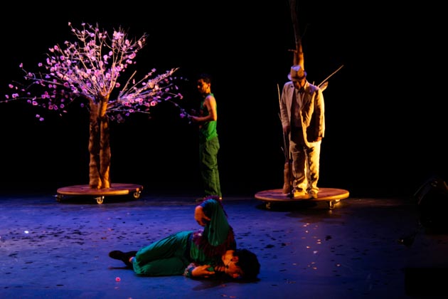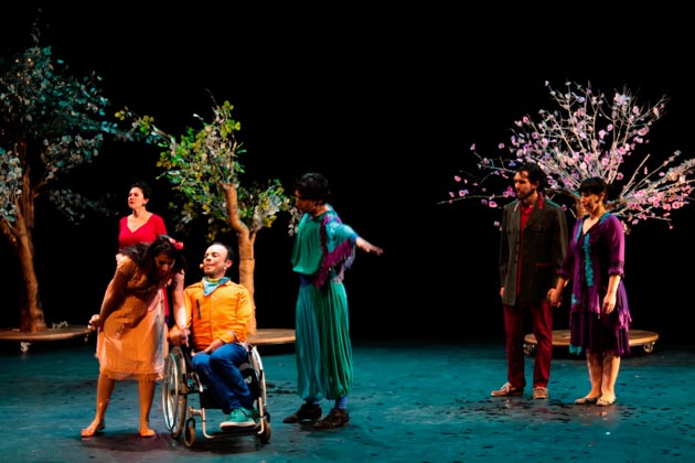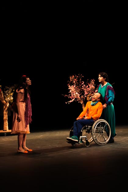MP: Si, yo siento que yo busco un teatro femenino en ese sentido, en el sentido que sea un espacio de emocionarse, que uno entienda desde las emociones también o desde la energía, más intuitiva, más amorosa, no tan racional, esta no es una obra aristotélica causa y efecto, sino que es una obra que se va entendiendo en sus fragmentos, en sus pedazos y me parece importante viajar desde ese lugar, a mí me gusta también indagar en lo luminoso. Me parecen válidas todas las opciones, pero creo que hay que recorrer los espacios de luz y que eso tiene que ver con lo femenino también, tiene que ver con el cuerpo, con el uso del cuerpo, es un teatro muy corporal, muy físico, donde la música juega un rol importantísimo, es casi una ópera esta obra y yo ando en esas exploraciones.