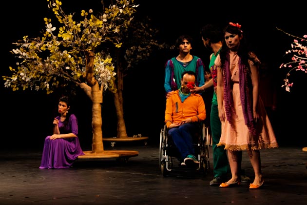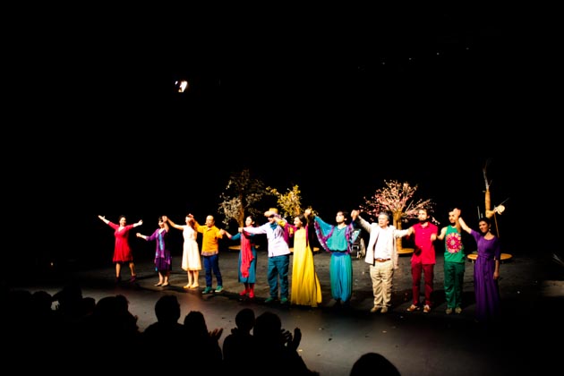MP: Llegamos a todo el mundo nosotros y nos adaptamos a todos los públicos y a todos los espacios, lo que pasa que todas las obras que nosotros hacemos son obras que nacen del diálogo con la gente. Para llegar a escribir esta obra o como fue La Pasionaria u otras obras, nosotros siempre primero participamos en distintas comunidades, trabajando, haciendo talleres, escuchando, dando entrevistas, entonces es un teatro muy vivo en este sentido, entre lo que recogemos con la gente, nosotros lo convertimos en teatro y luego volvemos a la gente a seguir conversando porque de eso se trata, aquí hay que armar nuevas conversaciones y bueno, las conversaciones hoy hay que hacerlas en la calle, en el centro comunitario, hay que hacerlas aquí y en todas partes, creo que tenemos que volver a vincularnos, transformar, es un teatro transformador este, es un teatro con un final feliz, queremos hacer obras con finales felices, siento que falta amor en este momento, amor no en el sentido rosado y romántico del yo te amo tú me amas, es la energía amorosa, entonces en esas búsquedas andamos ya hace harto tiempo, buscando, construyendo lenguaje..