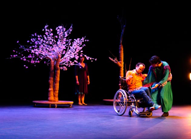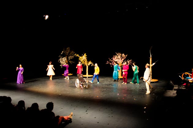 MP: Si, yo siento que yo busco un teatro femenino en ese sentido, en el sentido que sea un espacio de emocionarse, que uno entienda desde las emociones también o desde la energía, más intuitiva, más amorosa, no tan racional, esta no es una obra aristotélica causa y efecto, sino que es una obra que se va entendiendo en sus fragmentos, en sus pedazos y me parece importante viajar desde ese lugar, a mí me gusta también indagar en lo luminoso. Me parecen válidas todas las opciones, pero creo que hay que recorrer los espacios de luz y que eso tiene que ver con lo femenino también, tiene que ver con el cuerpo, con el uso del cuerpo, es un teatro muy corporal, muy físico, donde la música juega un rol importantísimo, es casi una ópera esta obra y yo ando en esas exploraciones.
