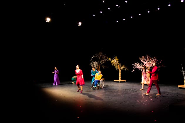 MP: Llegamos a todo el mundo nosotros y nos adaptamos a todos los públicos y a todos los espacios, lo que pasa que todas las obras que nosotros hacemos son obras que nacen del diálogo con la gente. Para llegar a escribir esta obra o como fue La Pasionaria u otras obras, nosotros siempre primero participamos en distintas comunidades, trabajando, haciendo talleres, escuchando, dando entrevistas, entonces es un teatro muy vivo en este sentido, entre lo que recogemos con la gente, nosotros lo convertimos en teatro y luego volvemos a la gente a seguir conversando porque de eso se trata, aquí hay que armar nuevas conversaciones y bueno, las conversaciones hoy hay que hacerlas en la calle, en el centro comunitario, hay que hacerlas aquí y en todas partes, creo que tenemos que volver a vincularnos, transformar, es un teatro transformador este, es un teatro con un final feliz, queremos hacer obras con finales felices, siento que falta amor en este momento, amor no en el sentido rosado y romántico del yo te amo tú me amas, es la energía amorosa, entonces en esas búsquedas andamos ya hace harto tiempo, buscando, construyendo lenguaje..