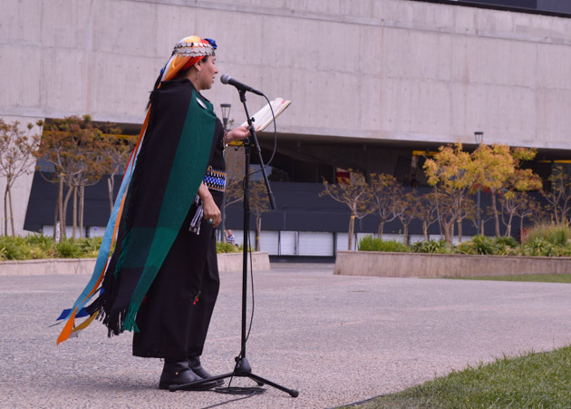 Libertad Manque, poetisa mapuche, declamaba unos versos potentes ante la mirada atenta de los presentes. Todas y todos participamos de un ritual mapuche alrededor del canelo plantado en el Parque, inundando el ambiente de una solemnidad especial, de esas que el pueblo mapuche sabe expresar.
