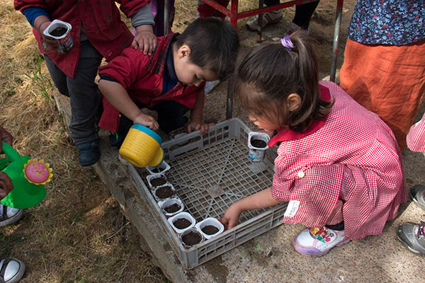 La inquietud de profesores, apoderadas y apoderados significó -entre otras cosas- encontrarse en torno a la acción. Durante la jornada se plantó una gran variedad de semillas, y las familias colaboraron al principio del proceso en la búsqueda de coladores, cargando agua, para luego retirarse y permitir que las niñas y niños pudiesen aprender, jugar y vivir la experiencia, en la simplicidad de los vasos, las semillas, y el agua, como elementos básicos para comprender los ciclos de las plantas, y de la naturaleza.