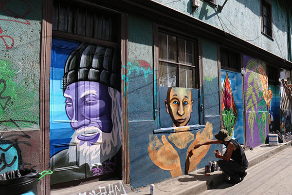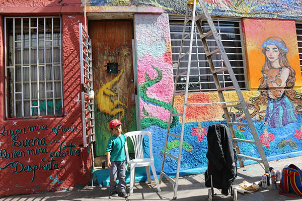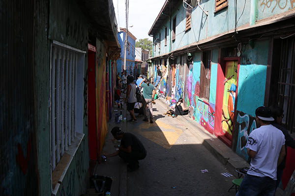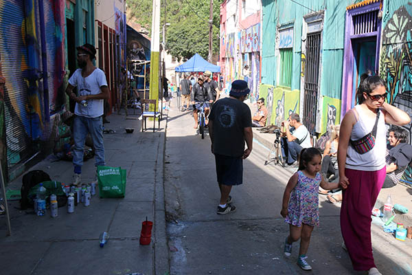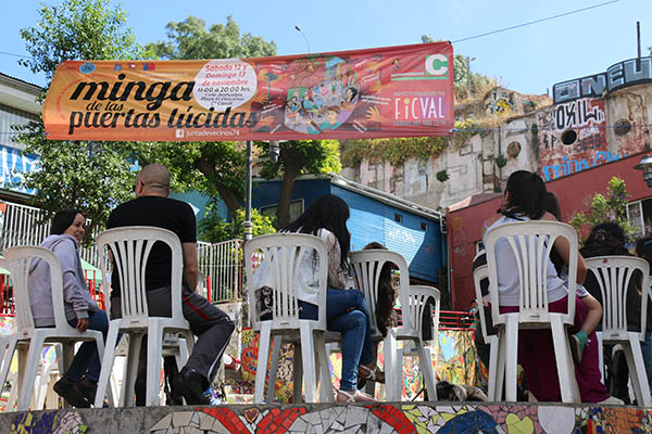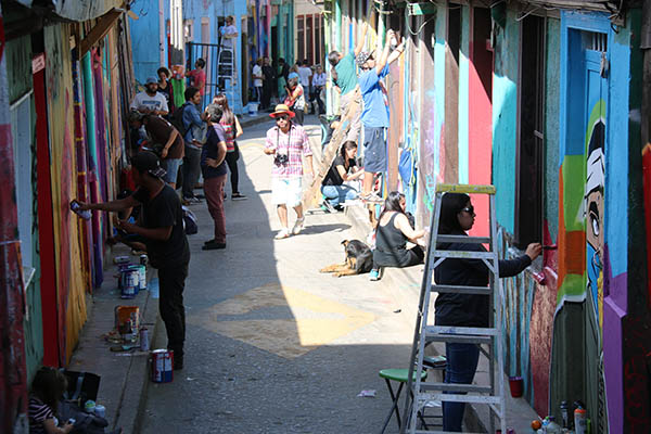 Específicamente, la junta de vecinos junto a la escuela Argentina, contigua al conflicto y el Área de Mediación del Parque Cultural de Valparaíso, lograron aunar voluntades para conformar un batallón de artistas que, por un lado, pintaron más de 40 puertas de calle Atahualpa y, por otro, levantaron una feria vecinal y un programa de números artísticos que acompañaron la imitable actividad.