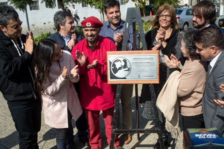 Un sentido homenaje al recientemente fallecido Ángel Parra se realizó esta mañana en el Parque Cultural de Valparaíso, lugar en el que se entregó una placa recordatoria de la ciudad a la familia Parra presente: Isabel, Javiera y Ángel Parra.