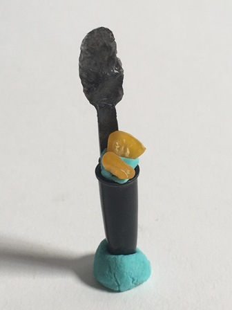 Por una parte, se propone una analogía entre el gesto de masticar y los procedimientos de la escultura, morder y triturar comida entendido como un ejercicio escultórico, en tanto la práctica de la escultura se comprende como modificaciones materiales mediante una herramienta.