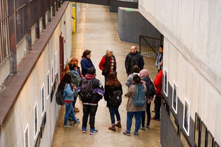 Estudiantes de la Escuela Trabajo Social de la Universidad de Valparaíso recorren el Parque Cultural de Valparaíso para problematizar su historia y las memorias de su pasado reciente, promoviendo un enfoque de derechos humanos en su formación profesional
