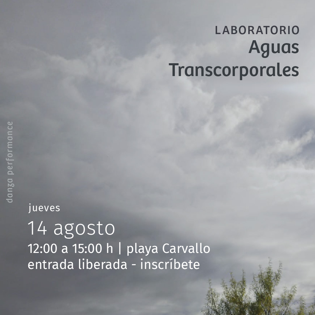 “Aguas transcorporales” es un laboratorio que se realizará en Playa Carvallo, y es una experiencia para entrar en contacto con el cuerpo y las aguas marinas como parte de un mismo ecosistema, despertando relaciones entre cuidado corporal y cuidado medioambiental.