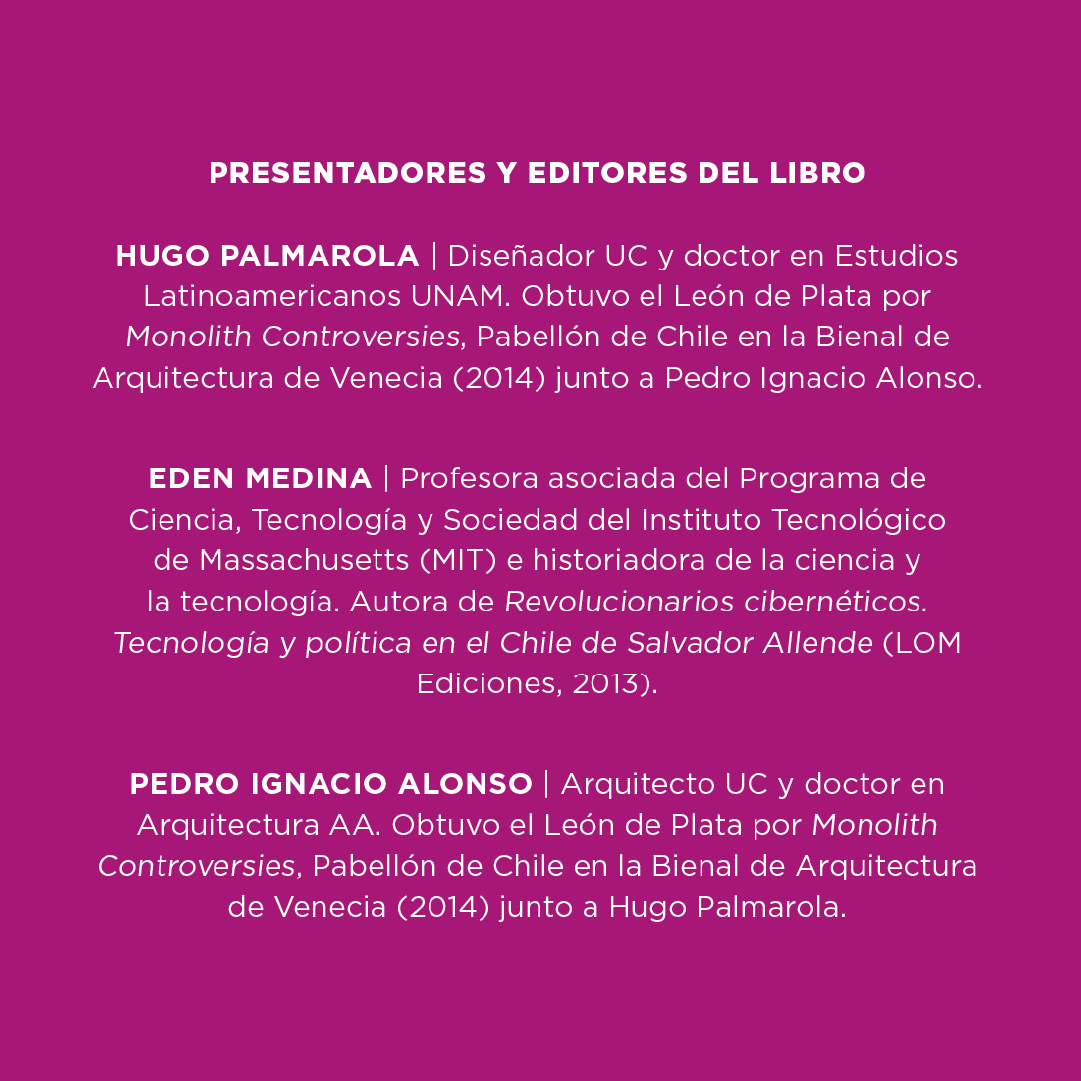 “Cómo diseñar una revolución. La vía chilena al diseño” contiene el registro y análisis más completo que se ha realizado sobre los proyectos de diseño gráfico e industrial desarrollados durante el gobierno de Salvador Allende. Los doce capítulos de este volumen abarcan algunas de las historias más significativas de esta innovadora experiencia de diseño, como las cucharas dosificadoras de leche en polvo diseñadas para combatir la desnutrición infantil, los carteles que fomentaron la acción colectiva y una sala de operaciones cibernética construida para administrar las industrias estatales de Chile.