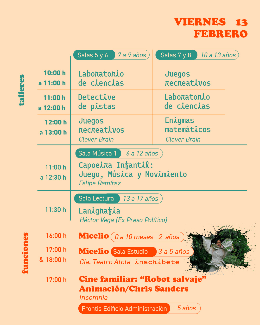 El emblemático centro cultural porteño ubicado en el corazón del cerro Cárcel ha preparado numerosas actividades para todas las edades. Y han decidido ofrecer un bloque robusto de talleres en jornada matinal orientado a niñas, niños y adolescentes; mientras que en las tardes la programación es nutrida por: danza, cuentacuentos, cine, teatro, música y muchas más. Todas las actividades son gratuitas, sin embargo, para algunas de ellas se requiere inscripción.