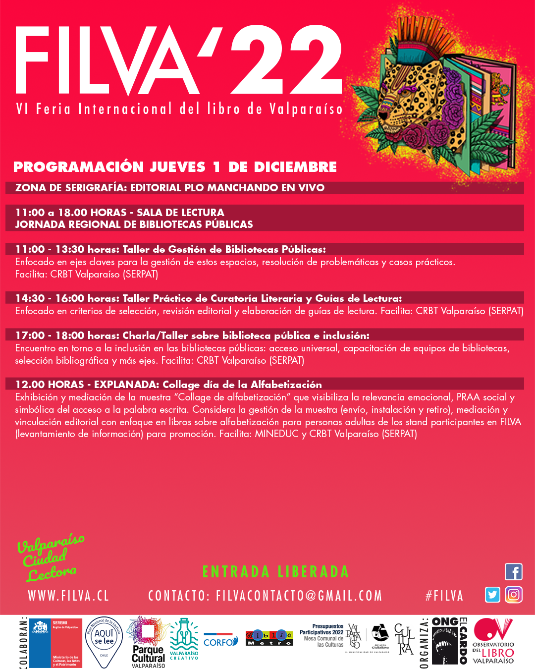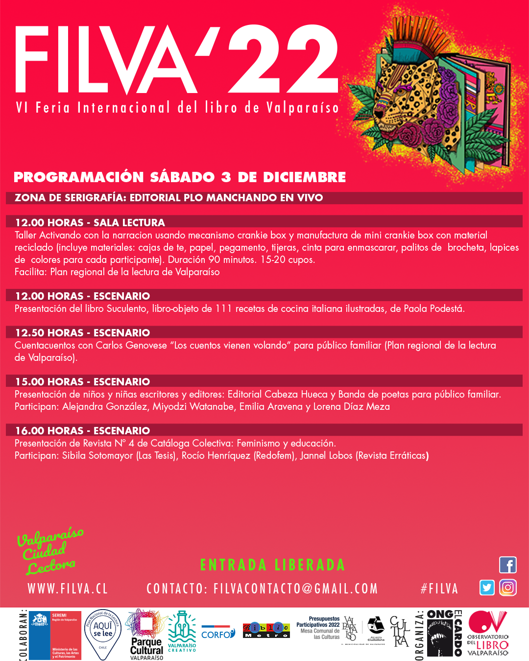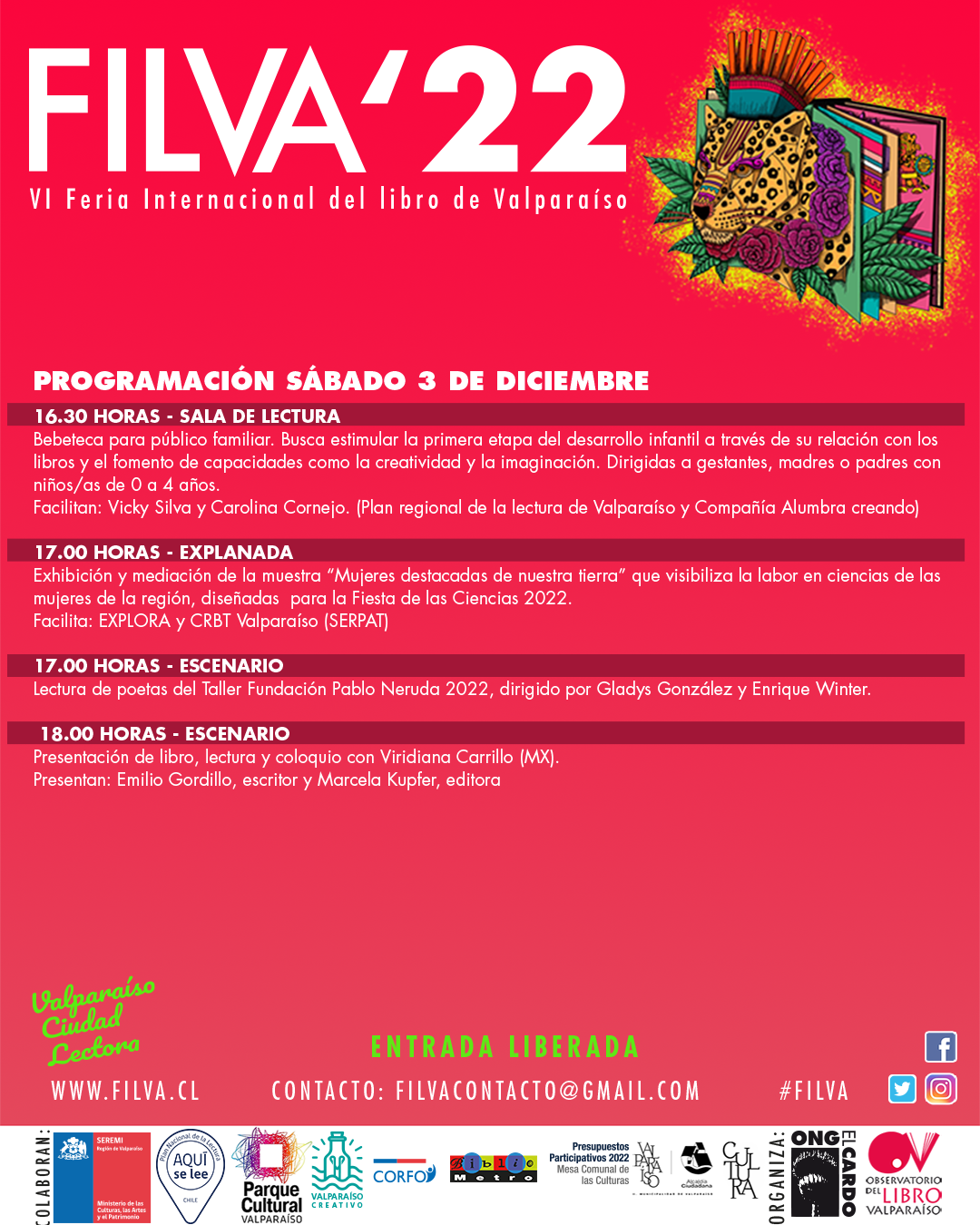 Más información: filvacontacto@gmail.comobservatoriolibrovalparaiso@gmail.com
