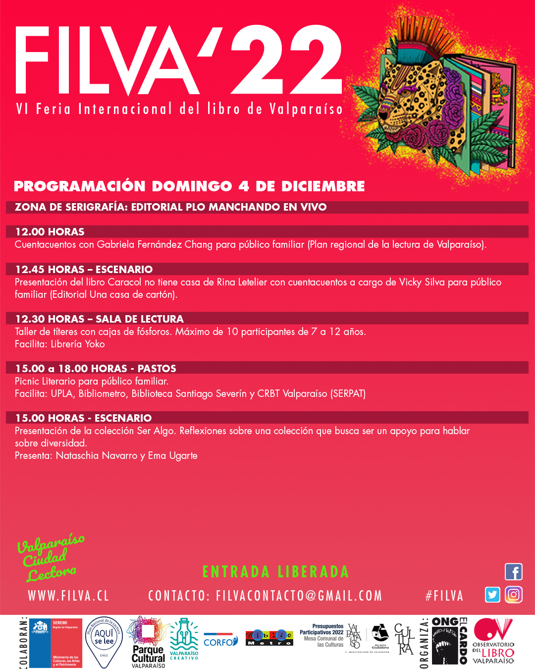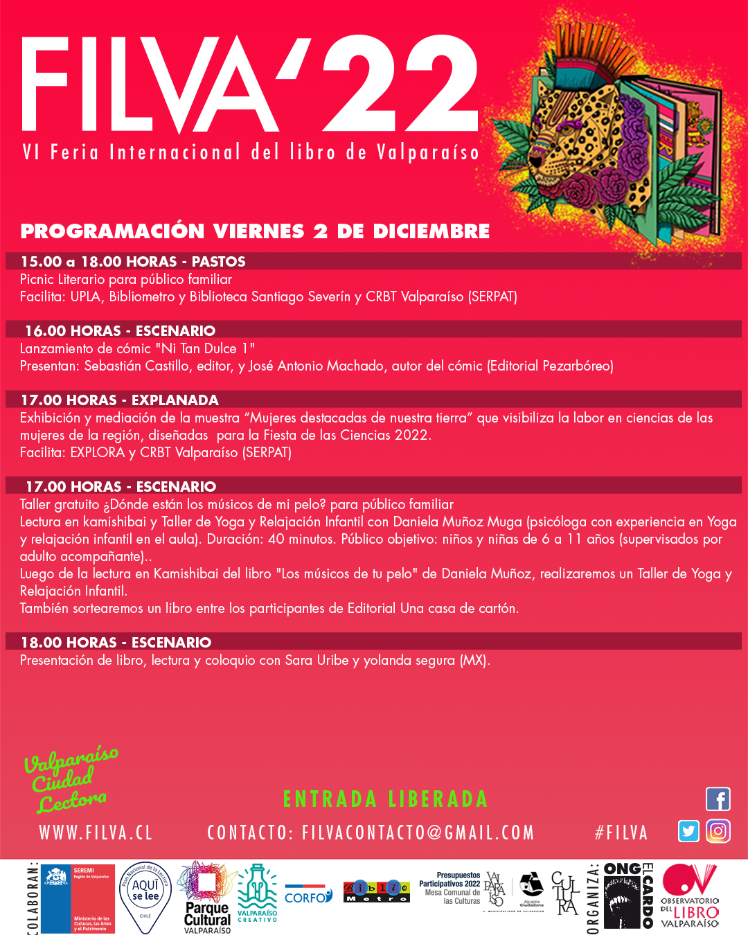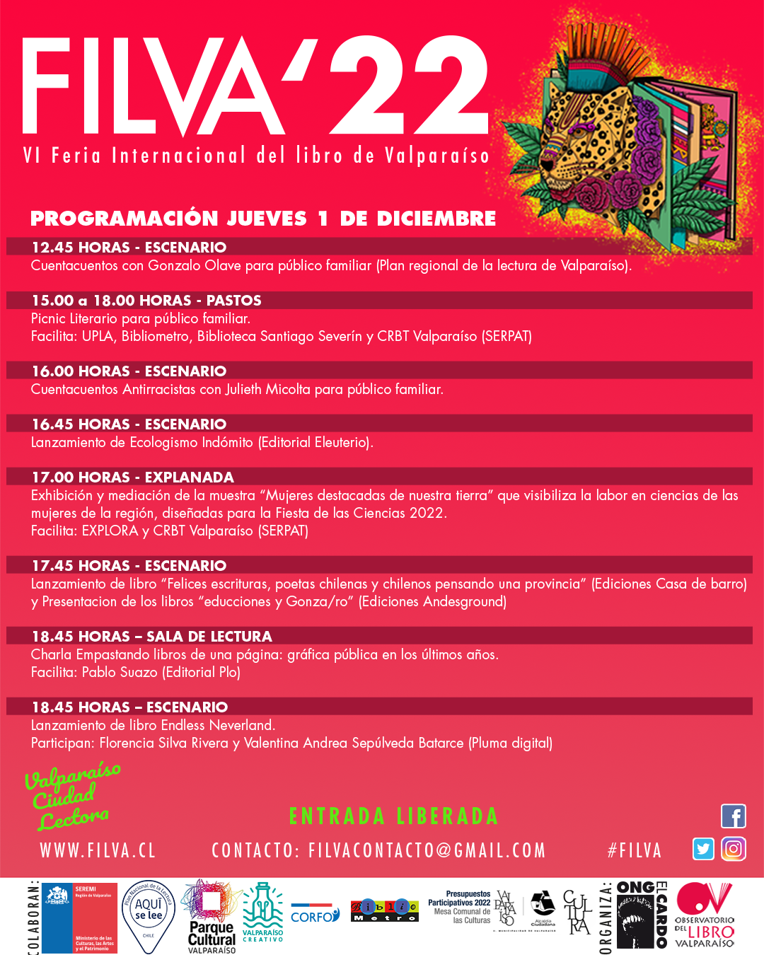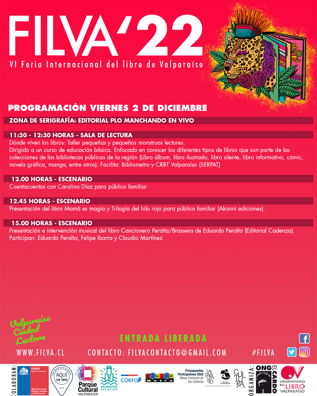 Más información: filvacontacto@gmail.comobservatoriolibrovalparaiso@gmail.com